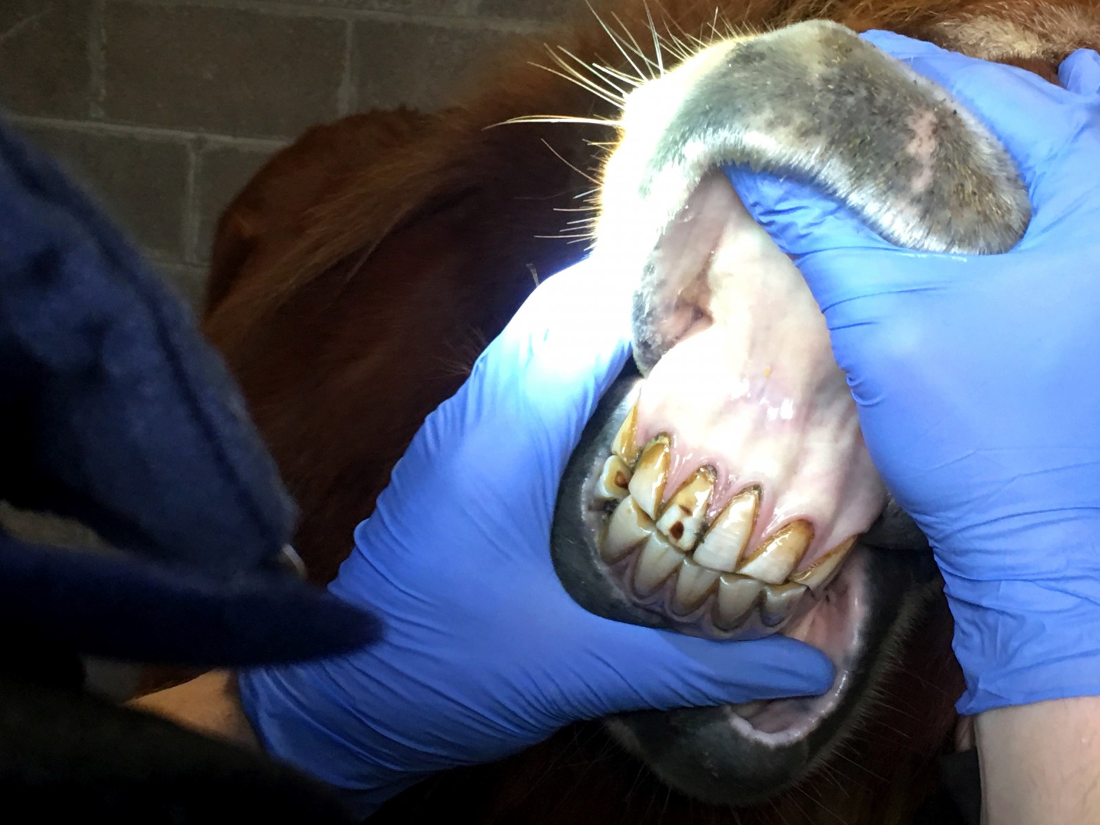 The vast majority of equine dentistry is relatively routine and tends to involve floating (rasping) the sharp enamel points, which grow on the teeth. These, if present, are usually found on the buccal aspect (cheek side) of the teeth on the upper arcades and on the lingual aspect (tongue side) of the teeth on the lower arcades. If left unattended, sometimes these sharp enamel points can cause painful areas of ulceration within the mouth.